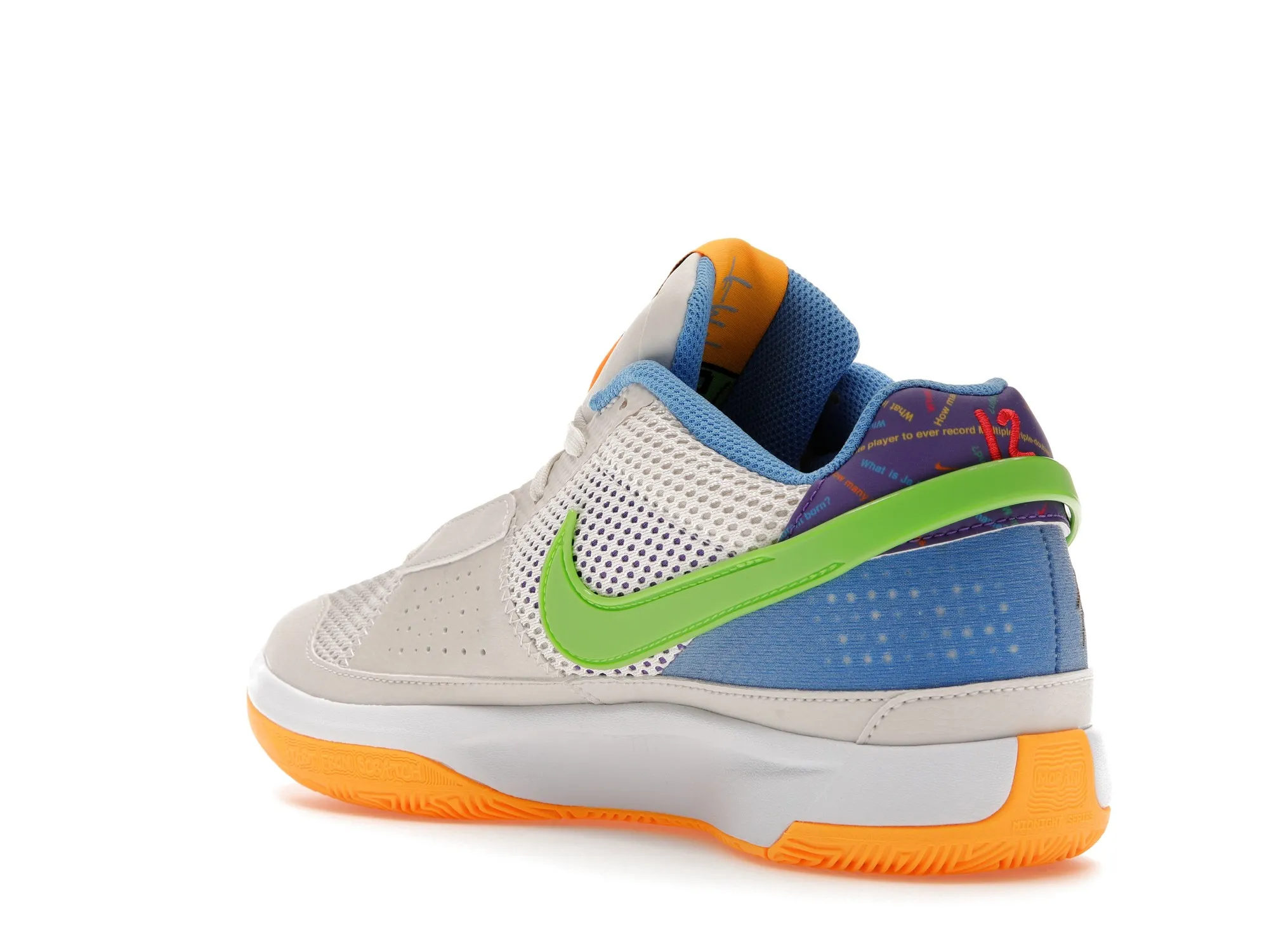 The Family Trivia Ja 1 has an upper that is constructed from breathable materials for ventilation. The shoe’s lacing system and adjustable straps provide a secure fit, allowing for a customized fit. The shoe’s cushioned midsole provides shock absorption and comfort. The Zoom Air unit in the midsole provides responsive cushioning. The sneaker features a rubber outsole with a grippy traction pattern for durability and traction. The shoe features a Swoosh on the lateral sides and a “12” inscription on the heel.