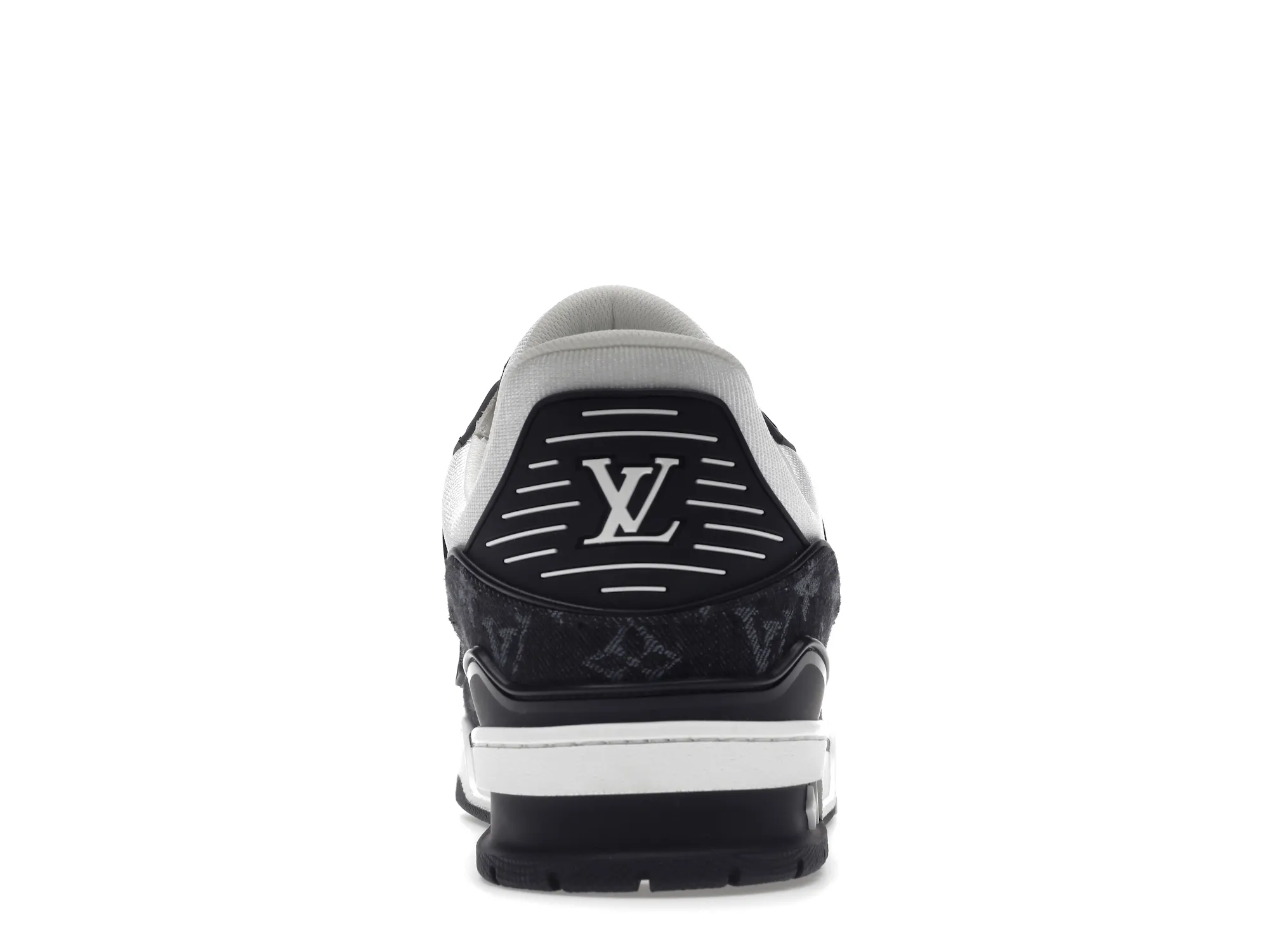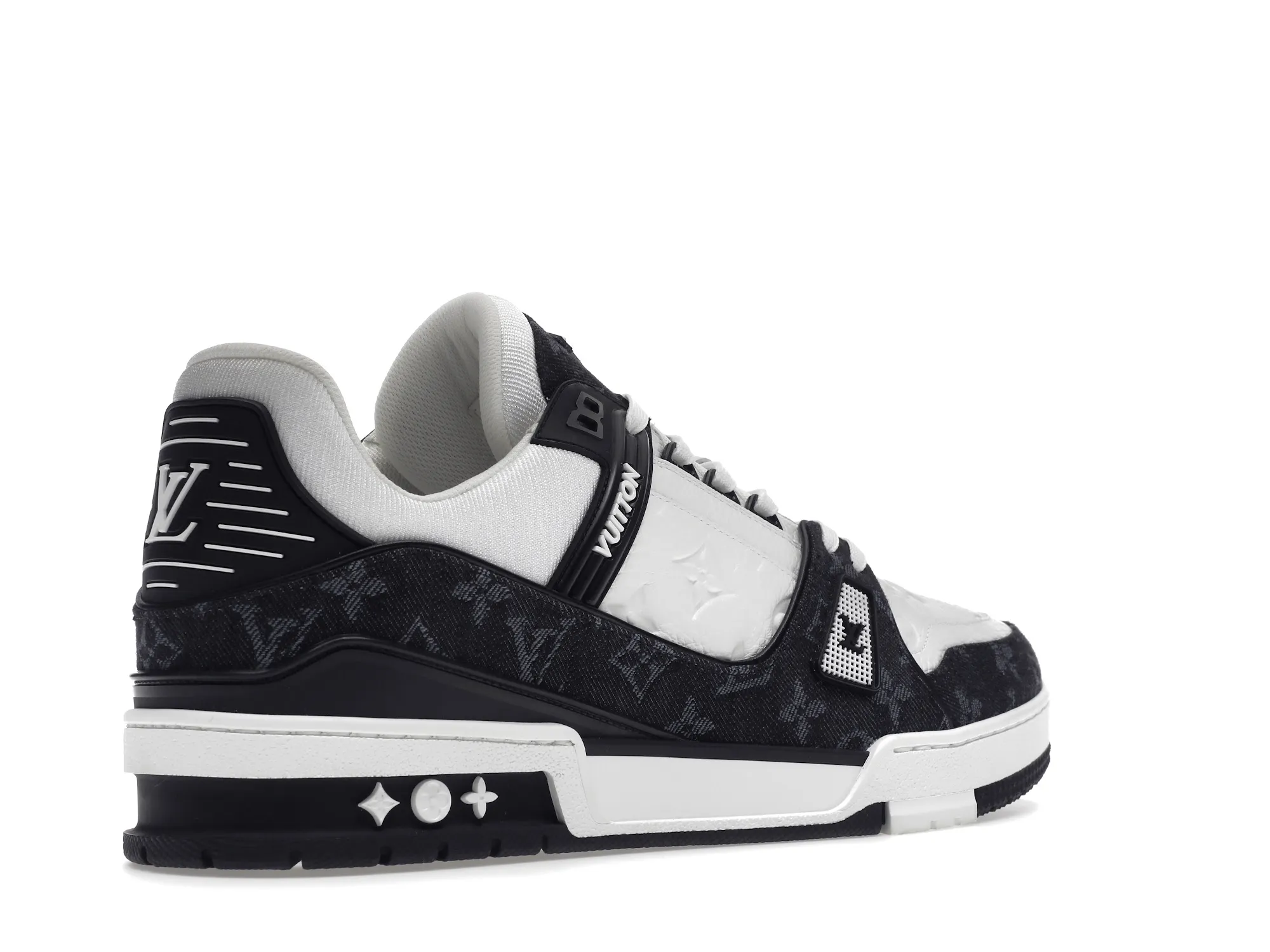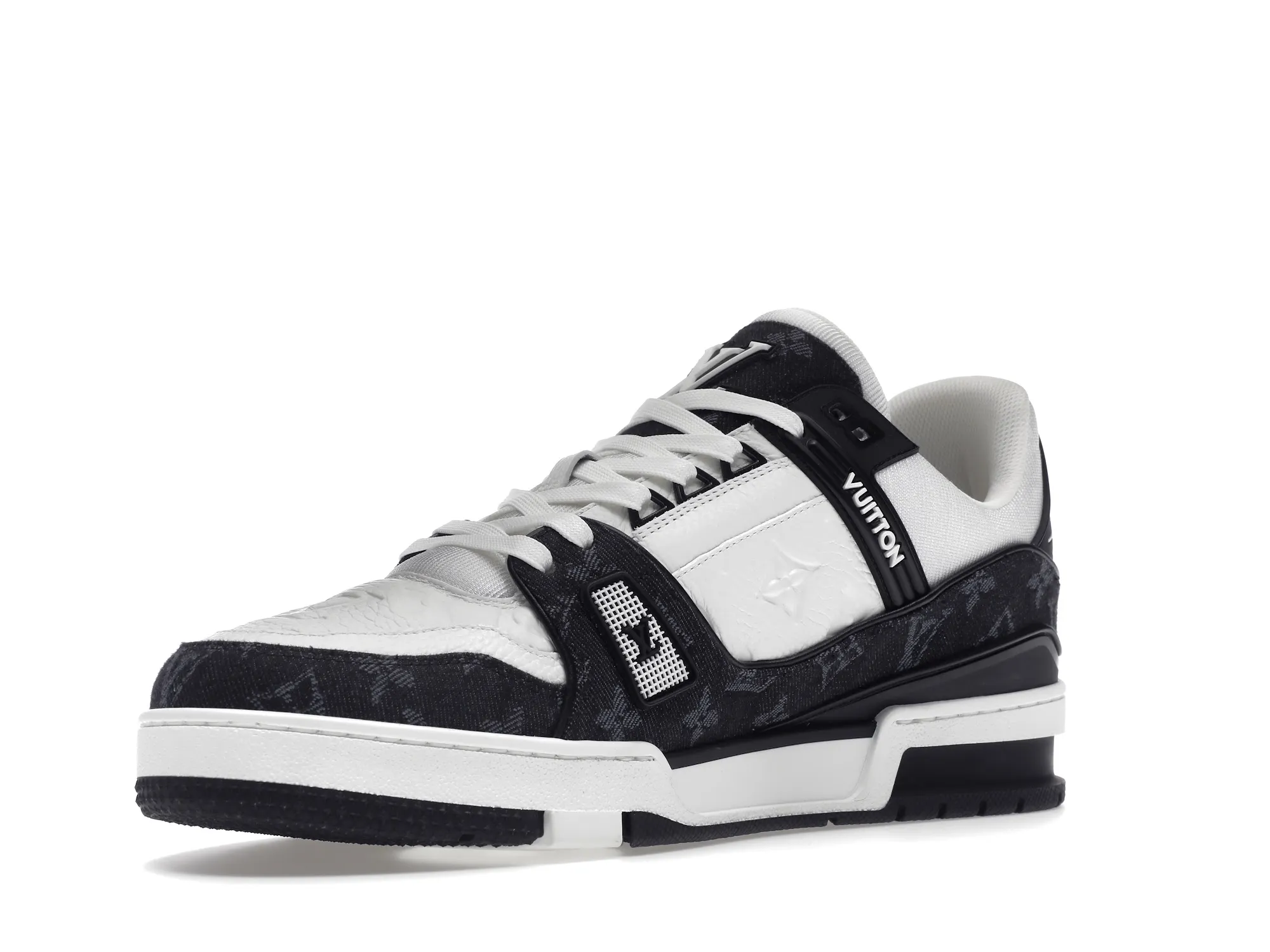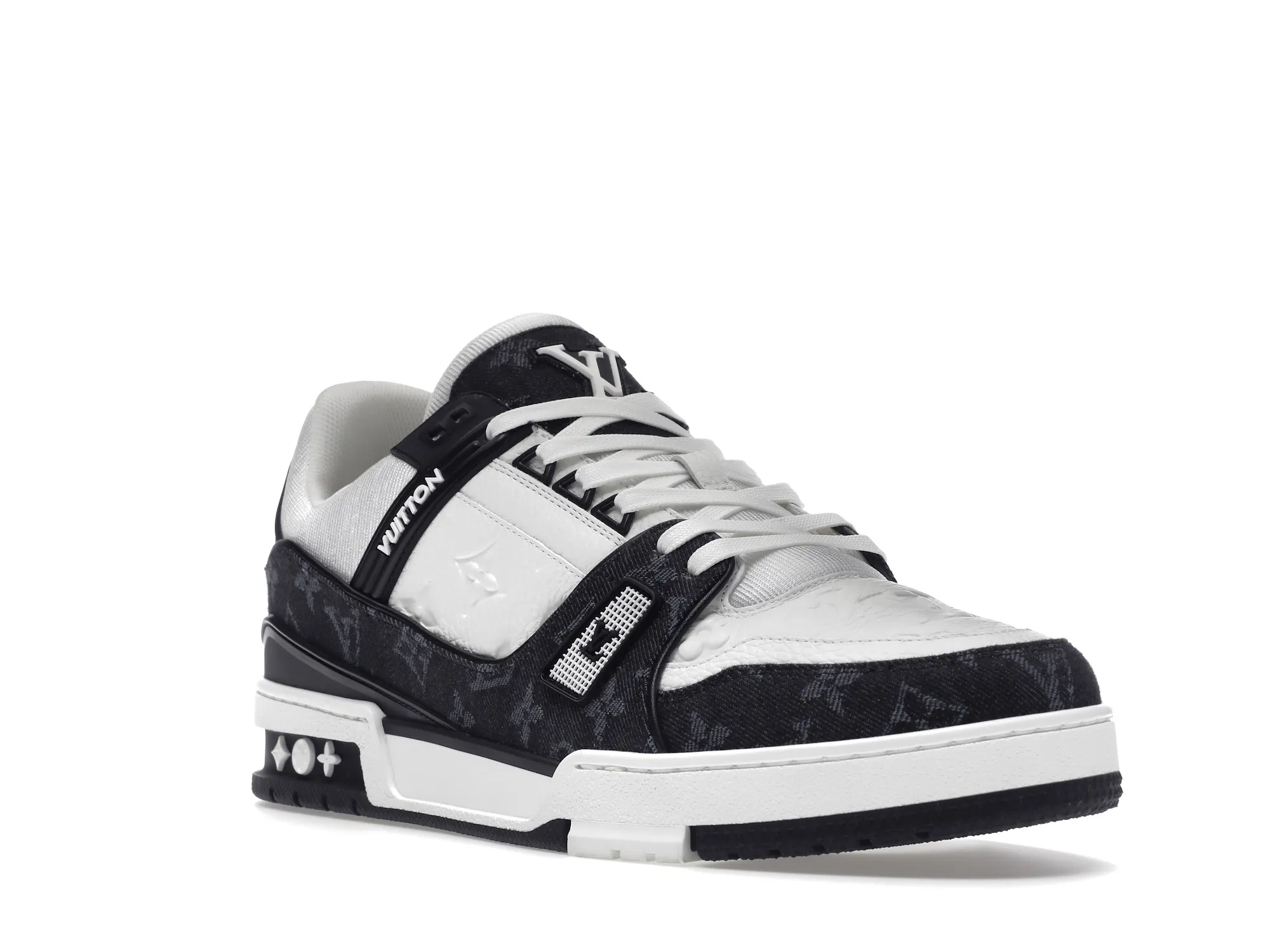 The iconic LV Trainer sneaker has been revisited this season in a combination of Monogram denim and Monogram-embossed grained calf leather. The contrasting colors and materials emphasize the intricate construction of this model, which takes inspiration from vintage basketball sneakers.