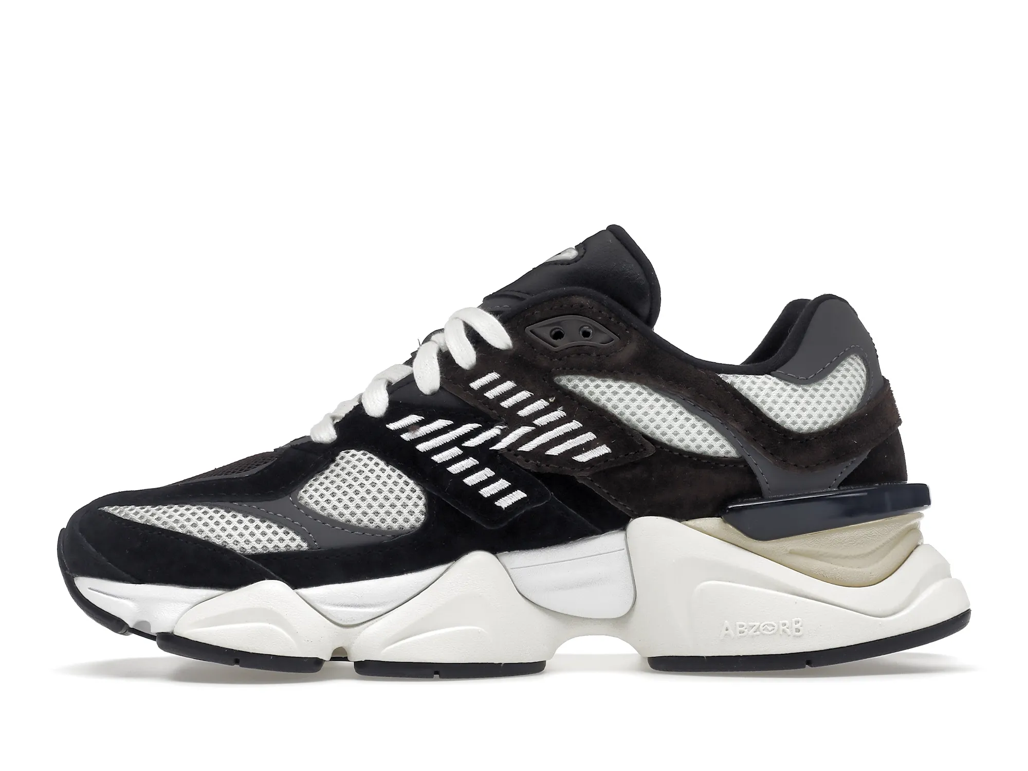 The NB 9060 Brown Black includes a mesh upper for breathability and durability with a synthetic overlay for support. The shoe’s outsole is constructed of rubber, while the midsole is made of REVlite, which offers responsiveness and cushioning. The sneakers’ ABZORB midsole technology provides additional cushioning and protection against impact. The shoe features “NB 9060” on the tongue and “NB” on the heel. The sneaker’s design is completed with an “N” logo on the lateral sides.