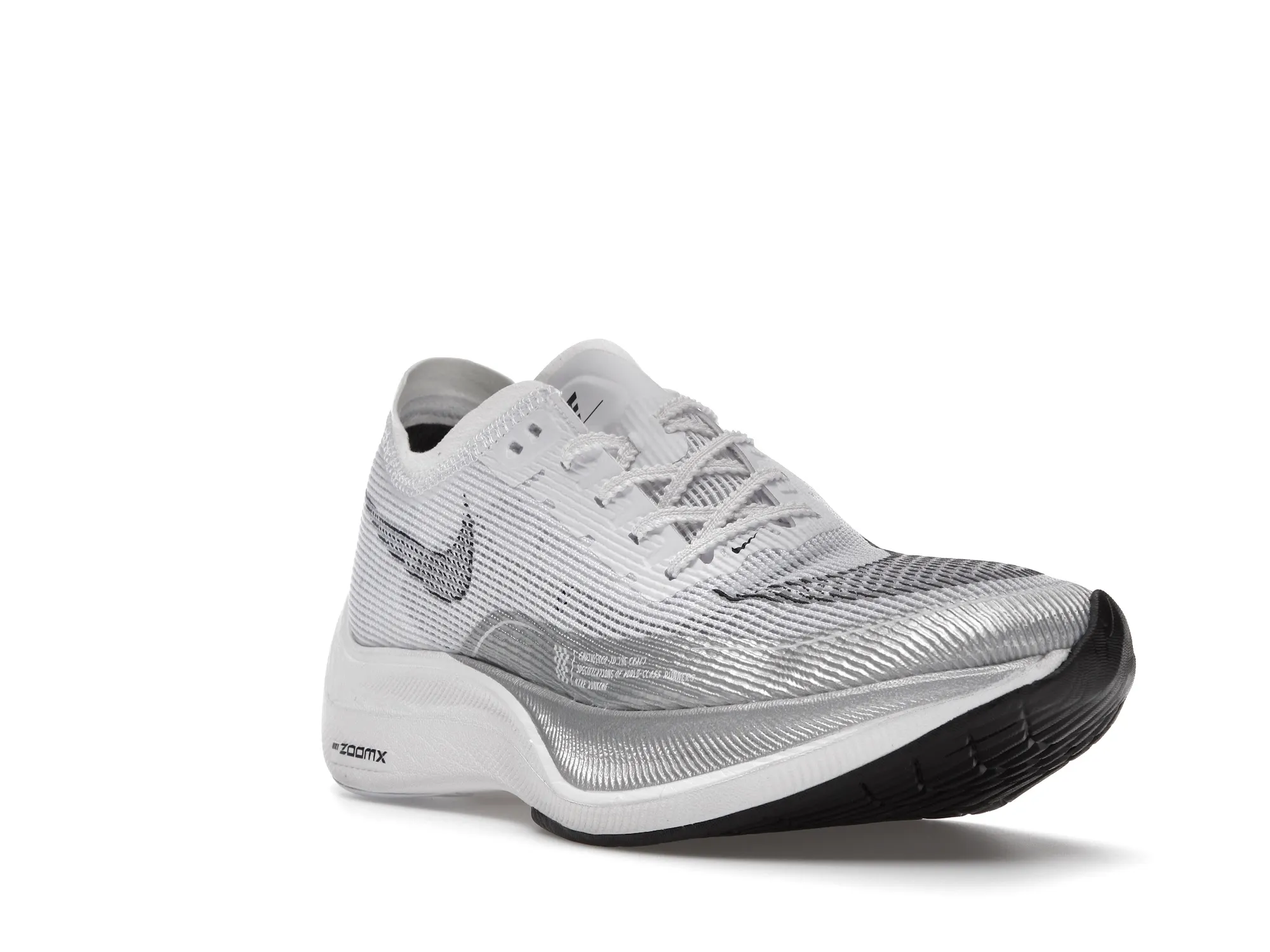 The Nike ZoomX Vaporfly Next 2 White Metallic Silver arrives in a classic color combination of white, metallic silver, and black.The Nike ZoomX Vaporfly Next 2 White Metallic Silver features a redesigned upper that helps improve comfort and breathability.